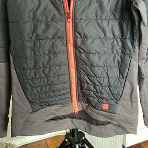 - Lightweight 100% recycled polyester Barrier fabric on the front of chest and arms blocks wind and has DWR finish to fend off moisture