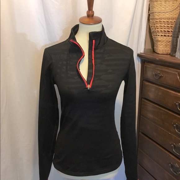 3/4 zip pull over, black on black geometric print, spandex stretch