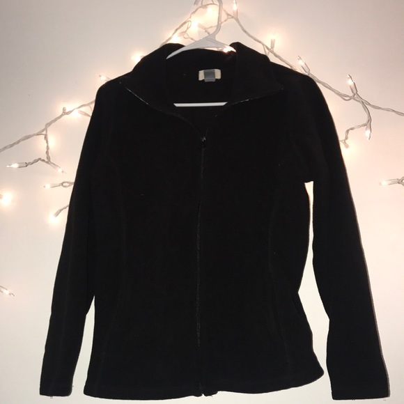 A black zip up jacket with two pockets