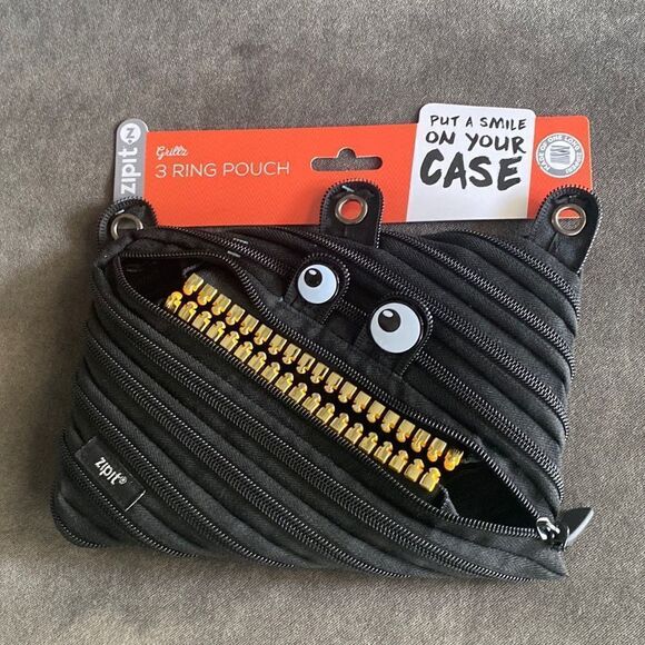 Zipit Grillz Black Pencil Case fits on 3 Ring Binder Folder NWT