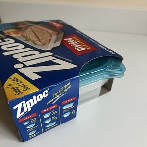 Ziploc DIVIDED Food Containers Snap 'n Seal Lids 2001 NEW USA Blue Pack Of 2