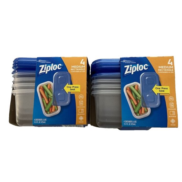 Ziploc One Press Seal Medium Rectangle Container - 4 ct NEW Lot of 2