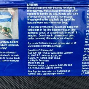 Ziploc Zip N Steam Microwave Steam Cooking Bags Large 7 Bags 10"x10" Sealed 2007
