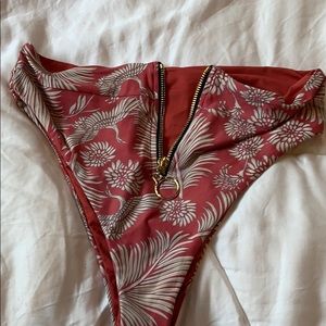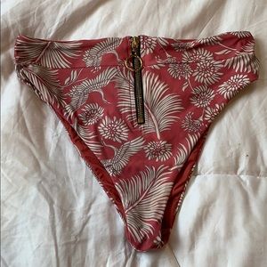 Only worn a couple times! These darling high waisted, slightly cheeky bikini bottoms have pinkish red with grey and white swan and flower print. They are so soft and comfortable you can wear them all day!