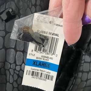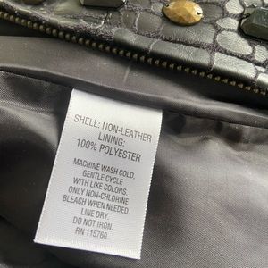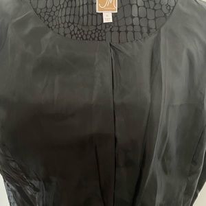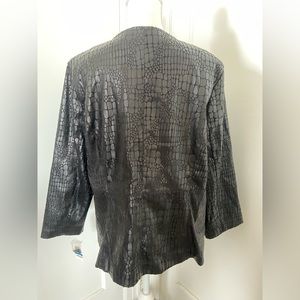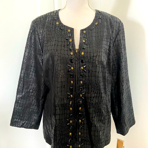 Size XL zipper leather-looking jacket. Never worn with tags still on. Loose fitting. Can be worn to work, with jeans and even for a more formal setting. Light weight, front zipper and beads going down the front.