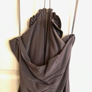 Unique halter dress with full body ruffles made of zippers. Beautiful gray color. 100% silk. Purchased at Neiman Marcus. You’ll definitely get some compliments with this unique dress. Large but fits more like a medium. Gorgeous.