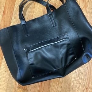 From Bath & Body Works; large, roomy totes; Never used; one black, one silver; soft lining inside; says outside is 100% PVC; zipper top