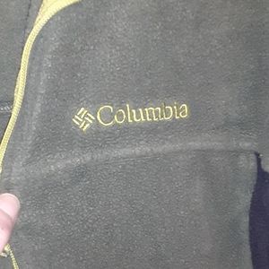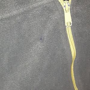 Dark green and black fleece zip up jacket. Well broken in and comfy!!! Small burn hole on front