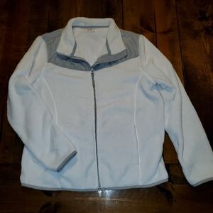 Zippered White Fleece Jacket with Grey Trim XL 16-18