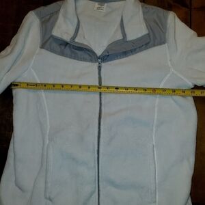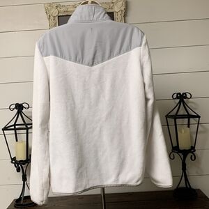 White fleece zippered jacket with grey trim