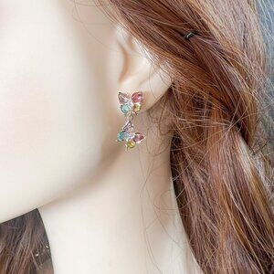 Zircon Butterfly Stud Earrings, Colorful Butterfly Dangle Earring, Gift for Her