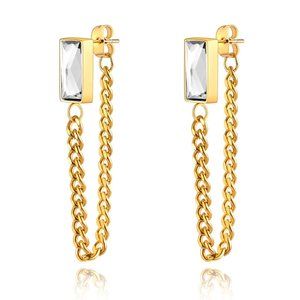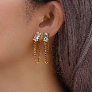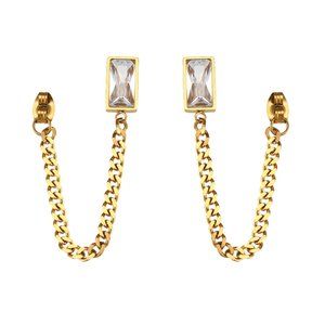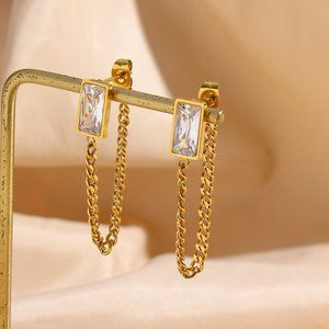 Zircon Chain Earrings With 18K Gold Plated Stainless Steel Waterproof
