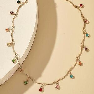 18K GOLD PLATED GEMSTONE MULTICOLOR CHARM CHOKER NECKLACE MEASURES 18”
