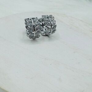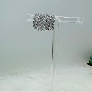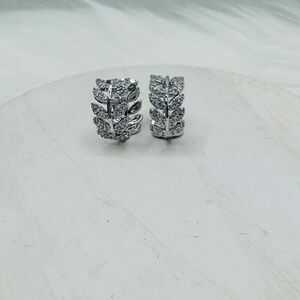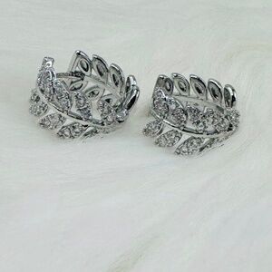 Zircon Olive Branch Leaf Small Hoop Earrings - Gold & Silver Set