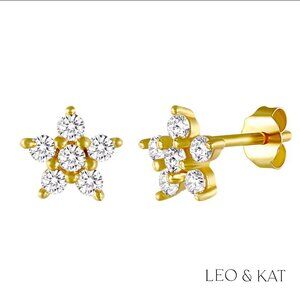 Zircon Star Flower Stud Earrings in Gold & Silver. 925 Sterling Silver. #1075