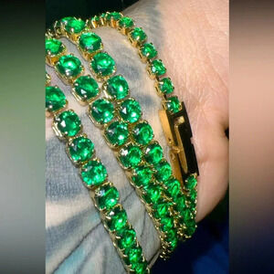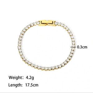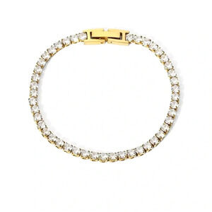 Zirconia Tennis 18K Gold Stainless Steel Waterproof Gold Gemstone Bracelet