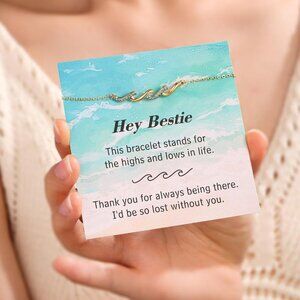 Features: Elegant wave design that flows naturally with your wrist, adjustable length for a comfortable fit, durable and hypoallergenic metal quality. The perfect accessory to add a touch of sparkle and positive energy to any look.