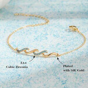 Zirconia Wave Bracelet 14K Gold Plated Adjustable Gift for Women