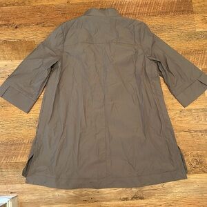Details about the item: quarter sleeve zip up jacket with pockets and side slits. windbreaker material.