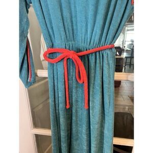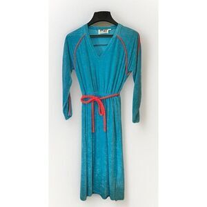 Zizi Vintage Teal Coral Terrycloth Long Sleeve Coverup Dress Beachy Mod 6 K