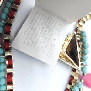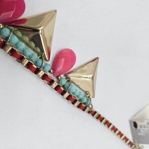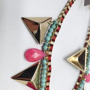Zoë + Syd Gold Triangle Statement Necklace With Pink & Turquoise Beads