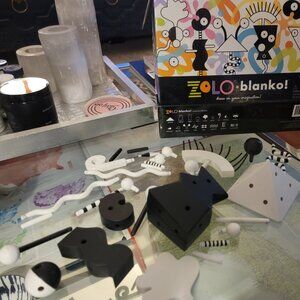 Zolo Blanko was named a 2010 Parent Choice Award Winner. Paint, draw on, or style the plastic pieces in any number of ways. Each piece is coated in a chalk-board material so you can express yourself decorating them with chalk, paint, stickers, and many other art materials (art media not included). Or just enjoy the set in its original stark black and white. Zolo Blanko works with the other plastic Zolo sets. Recommended for ages 5 and up. Dimensions: 13 L x 8 W x 3" H (carrying case)