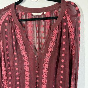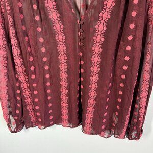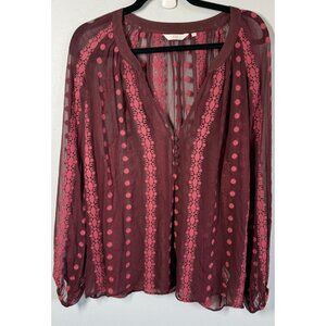 Zoa New York 100% Silk Sheer Embroidered Blouse Large ASO TV Vampire Diaries