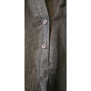 Zoa Womens Small Blouse Sheer Navy V-Neck Pockets Roll Tab Sleeves