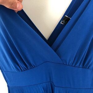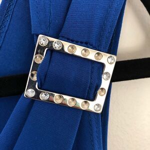Zoah Design Blue Sleeveless V Neck midi Dress. Size small. Buckle with rhinestones on the straps. High waist and flows at the bottom. Great condition!!