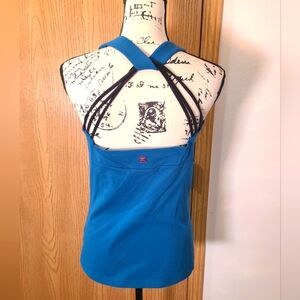 Zobha Blue Racerback athletic strappy tank Top with built in bra