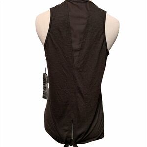Zobha black tank top with mesh detail and waist tie in the back, medium, new