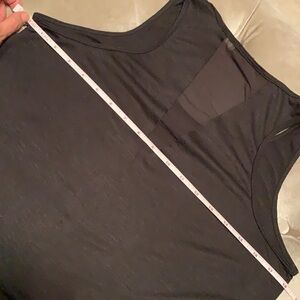 Super cute black tank top by Zobha. This features a mesh inset piece in the back as well as a tie at the bottom of the back. It’s a really super soft nice weight fabric that you will really love. Wear it to work out, layer it with something else, this piece is very versatile and a great piece to have in your closet. Size medium, new with tags. Please see photos for measurements.
