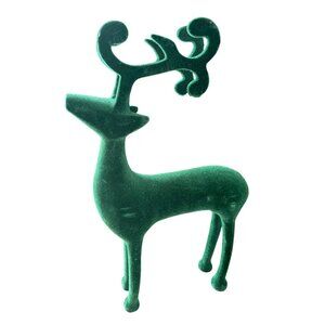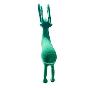 The Zodax Green Flocked Standing Deer Figurine Statue in green is a 12.5-inch high decorative piece perfect for the holiday season, especially Christmas. This figurine statue by Zodax adds a touch of festive charm to table or mantle decor. Its tall stature and flocked finish make it a striking statement piece for the winter season.