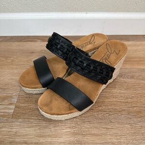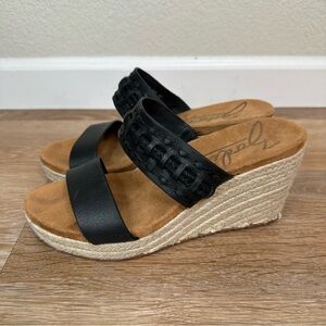Zodiac Black Leather Poppy Slide Espadrill Sandals, Size 8