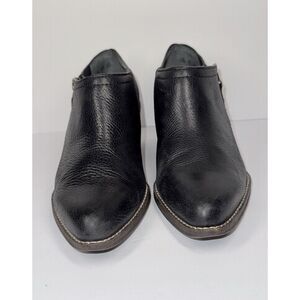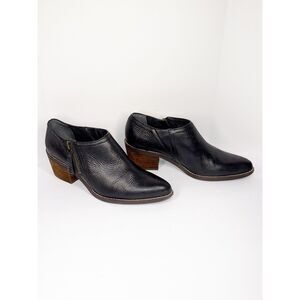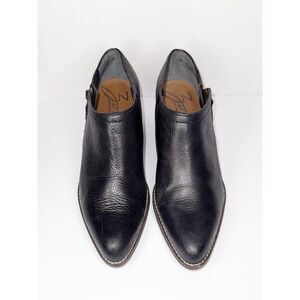 Zodiac Black Leather Shootie Pointed Toe Bootie Western Heel Ankle Boot Side Zip Womens 7.5