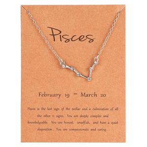 Zodiac Constellation PISCES ONLY Silver Color Pendant Necklace on card