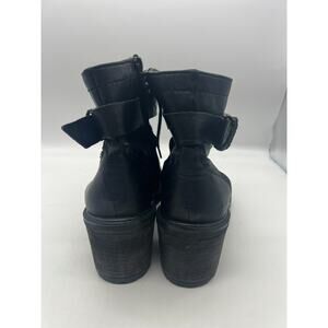 Zodiac Gemma Leather Block Heel Combat Lace-up Zip Boots Black Women's 8.5M