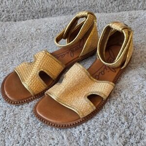 Zodiac Metallic Gold Woven Leather Ankle Strap Sandals Womens Shoes Sz 8.5