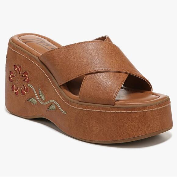 Zodiac Nessa Carmel Brown Flower Butterfly Slide Wedge Sandal size 8.5