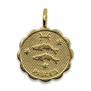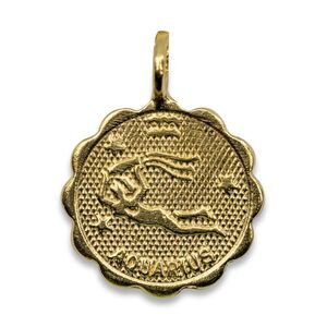These retro pendants were inspired by a collection of vintage astrology coins from the 1970s. Each of these small pendants have a unique scalloped edge and measure approximately 11mm in diameter. These are gold plated. They are in Latin. Both the pendant and chain are made from recycled brass and plated in a thick layer (2.5 microns) of 14K gold. The necklace chain is 18".
