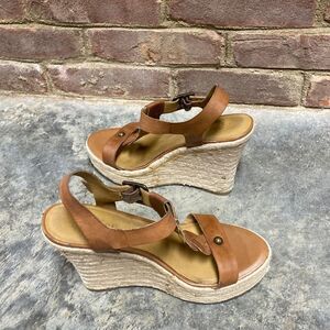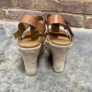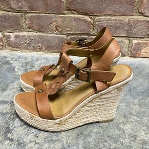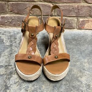 Zodiac Quana Saddle Tan Leather Espadrille Wedge Sandal Size 8
