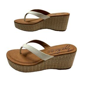 Zodiac Sandal Womens 9.5 White Thong Platform Wedge Espadrille Boho Hippie Beach
