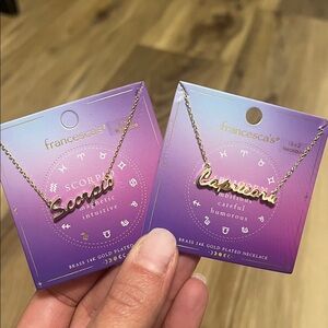 14k Gold Plated zodiac script necklaces on dainty chains. Signs are: