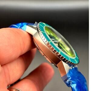 Experience the bold and vibrant Zodiac Super Sea Wolf ZO9310, a modern interpretation of the brands iconic dive heritage. This model features a stainless steel case paired with a striking teal and lime dial and bezel, delivering unmistakable wrist presence. Powered by a Swiss automatic movement and built with 200 meter water resistance, a unidirectional dive bezel, sapphire crystal, and Super LumiNova for excellent low light visibility, this Super Sea Wolf is engineered for performance and standout style.