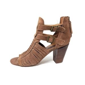 Zodiac Womens 10 Cassie Leather Sandals Brown Tan Woven Open Toe Block Heel Zip