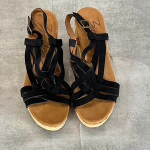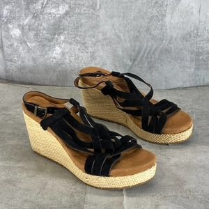 Zodiac Women's Black Petra Round-Toe Slingback Wedge Platform Sandals SZ 8