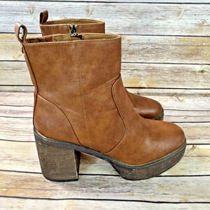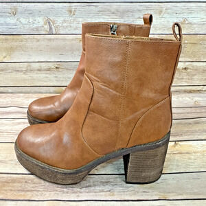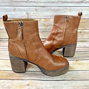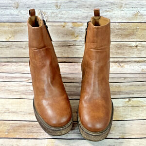 Zodiac Womens Cognac Brown Vegan Faux Leather Chunky Heel Platform Boots 9