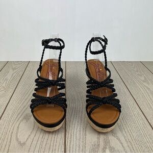 New in box, Zodiac Women's Shana Strappy Platform Espadrille Wedge Sandals, size: 9M women's, color: Black, MSRP $99. Small glue mark ass shown.