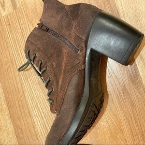 Zodiac brown suede lace up side zip ankle bootie with stacked heel 6.5