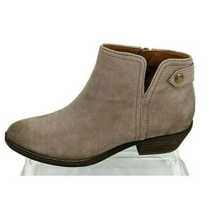 Zodiac Madison Ankle Booties Gray color called Mushroom. Fabric Upper Faux Suedish Leather with slight aged look on toes and back of ankles. Cut out with side zipper. Block heel. Women's size 6 US. Very Good Pre-owned Condition. No rips, holes, or stains. Comes from smoke free environment.